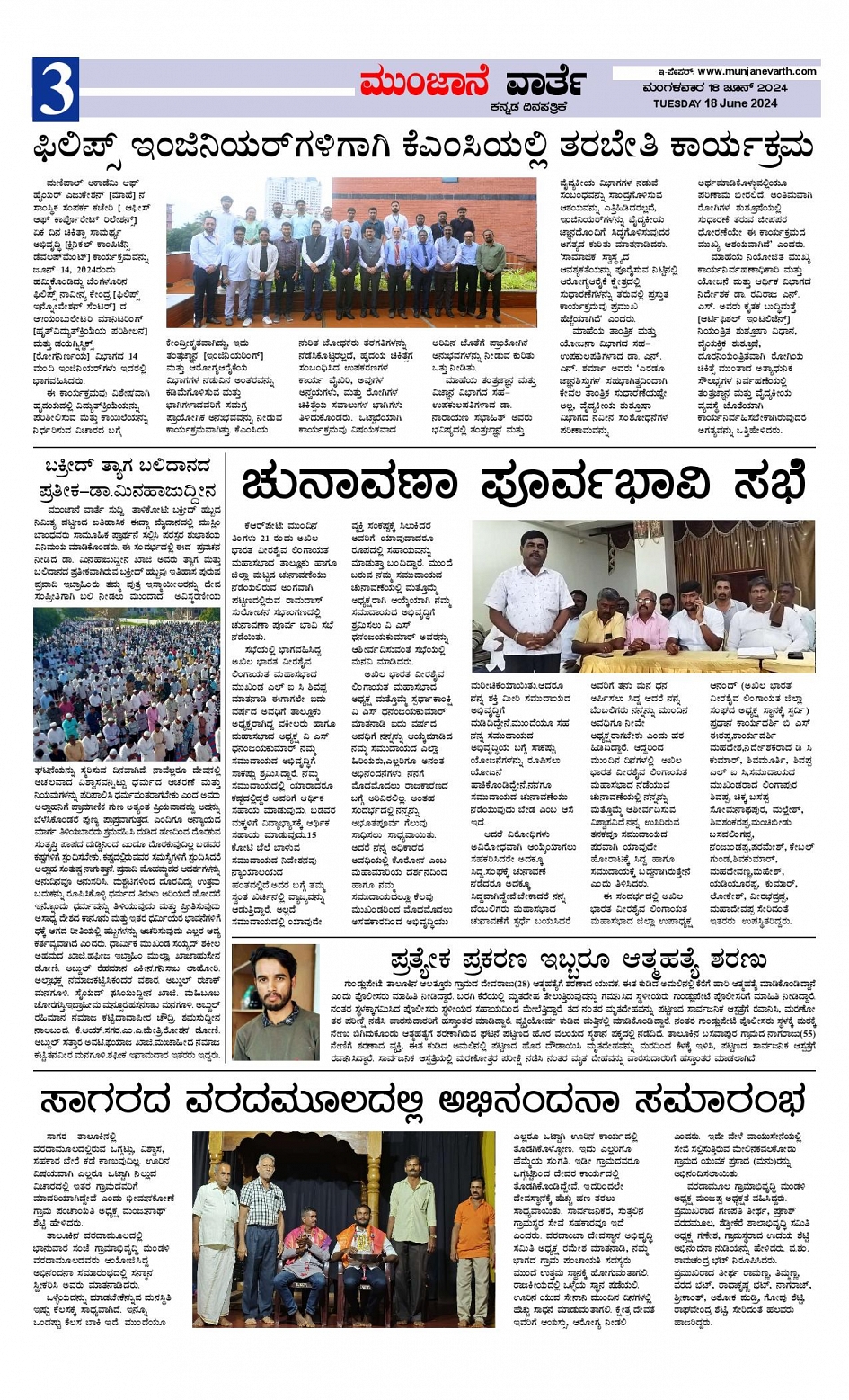 MV 18 Jun 2024 Page: 3 June 18, 2024 ಮುಂಜಾನೆ-ವಾರ್ತೆ << First << 3 >> Last >> Page 1Page 2Page 3Page 4 × MV 18 Jun 2024 Munjjane varthe 18-06-2024-page-001Munjjane varthe 18-06-2024-page-002Munjjane varthe 18-06-2024-page-003Munjjane varthe 18-06-2024-page-004 Full PDF << First << 3 >> Last >> Munjjane varthe 18-06-2024-page-001Munjjane varthe 18-06-2024-page-002Munjjane varthe 18-06-2024-page-003Munjjane varthe 18-06-2024-page-004 Munjjane varthe 18-06-2024-page-003