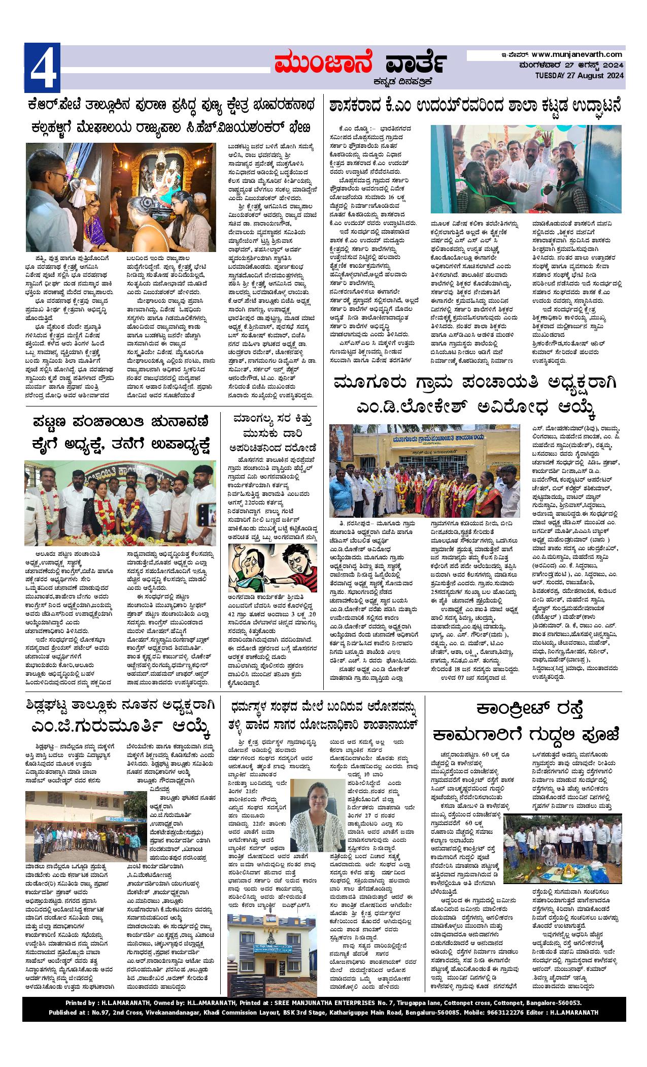 MV 27 Aug 2024 Page: 4 August 27, 2024 << First << 4 >> Last >> Page 1Page 2Page 3Page 4 × MV 27 Aug 2024 Munjane varthe 27-08-2024-page-001Munjane varthe 27-08-2024-page-002Munjane varthe 27-08-2024-page-003Munjane varthe 27-08-2024-page-004 << First << 4 >> Last >> Munjane varthe 27-08-2024-page-001Munjane varthe 27-08-2024-page-002Munjane varthe 27-08-2024-page-003Munjane varthe 27-08-2024-page-004 Munjane varthe 27-08-2024-page-004