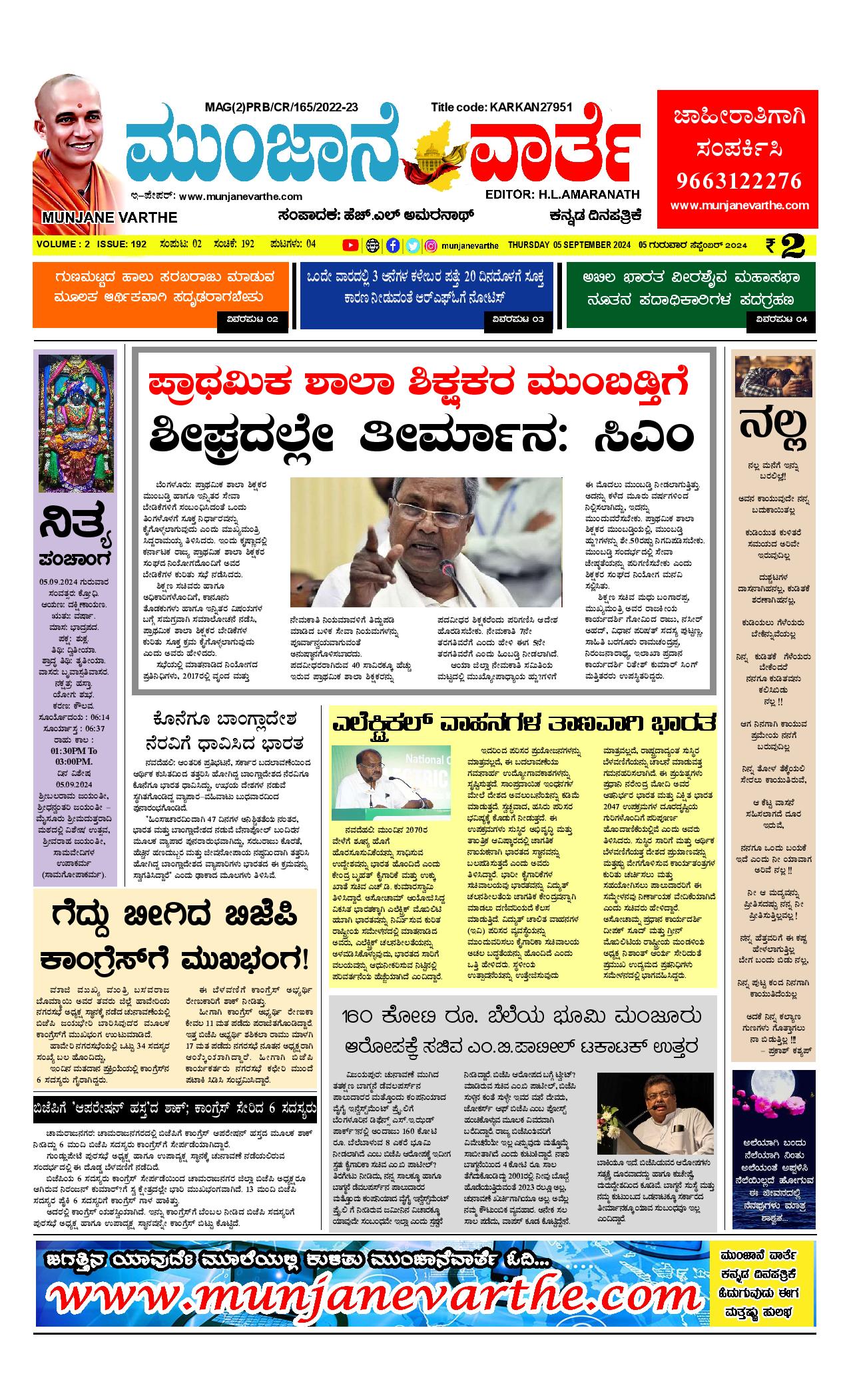 ಮುಂಜಾನೆ ವಾರ್ತೆ 05-09-2024 Munjane varthe September 05, 2024 << First << 1 >> Last >> Page 1Page 2Page 3Page 4 × ಮುಂಜಾನೆ ವಾರ್ತೆ 05-09-2024 Munjane varthe ಮುಂಜಾನೆ ವಾರ್ತೆ 05-09-2024 Munjane varthe-page-001ಮುಂಜಾನೆ ವಾರ್ತೆ 05-09-2024 Munjane varthe-page-002ಮುಂಜಾನೆ ವಾರ್ತೆ 05-09-2024 Munjane varthe-page-003ಮುಂಜಾನೆ ವಾರ್ತೆ 05-09-2024 Munjane varthe-page-004 << First << 1 >> Last >> ಮುಂಜಾನೆ ವಾರ್ತೆ 05-09-2024 Munjane varthe-page-001ಮುಂಜಾನೆ ವಾರ್ತೆ 05-09-2024 Munjane varthe-page-002ಮುಂಜಾನೆ ವಾರ್ತೆ 05-09-2024 Munjane varthe-page-003ಮುಂಜಾನೆ ವಾರ್ತೆ 05-09-2024 Munjane varthe-page-004 ಮುಂಜಾನೆ ವಾರ್ತೆ 05-09-2024 Munjane varthe-page-001