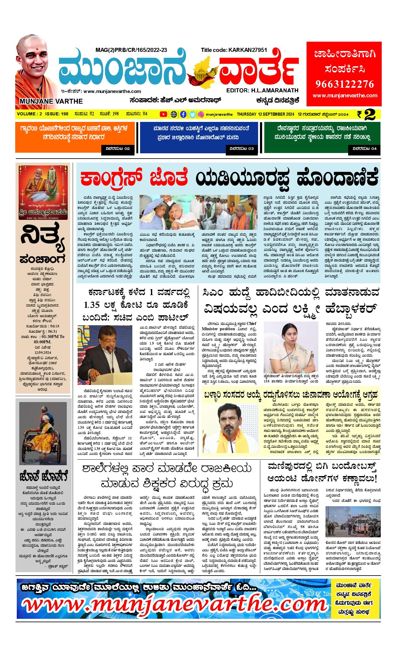 ಮುಂಜಾನೆ ವಾರ್ತೆ 12-09-2024 Munjane varthe September 12, 2024 << First << 1 >> Last >> Page 1Page 2Page 3Page 4 × ಮುಂಜಾನೆ ವಾರ್ತೆ 12-09-2024 Munjane varthe ಮುಂಜಾನೆ ವಾರ್ತೆ 12-09-2024 Munjane varthe-page-001ಮುಂಜಾನೆ ವಾರ್ತೆ 12-09-2024 Munjane varthe-page-002ಮುಂಜಾನೆ ವಾರ್ತೆ 12-09-2024 Munjane varthe-page-003ಮುಂಜಾನೆ ವಾರ್ತೆ 12-09-2024 Munjane varthe-page-004 << First << 1 >> Last >> ಮುಂಜಾನೆ ವಾರ್ತೆ 12-09-2024 Munjane varthe-page-001ಮುಂಜಾನೆ ವಾರ್ತೆ 12-09-2024 Munjane varthe-page-002ಮುಂಜಾನೆ ವಾರ್ತೆ 12-09-2024 Munjane varthe-page-003ಮುಂಜಾನೆ ವಾರ್ತೆ 12-09-2024 Munjane varthe-page-004 ಮುಂಜಾನೆ ವಾರ್ತೆ 12-09-2024 Munjane varthe-page-001