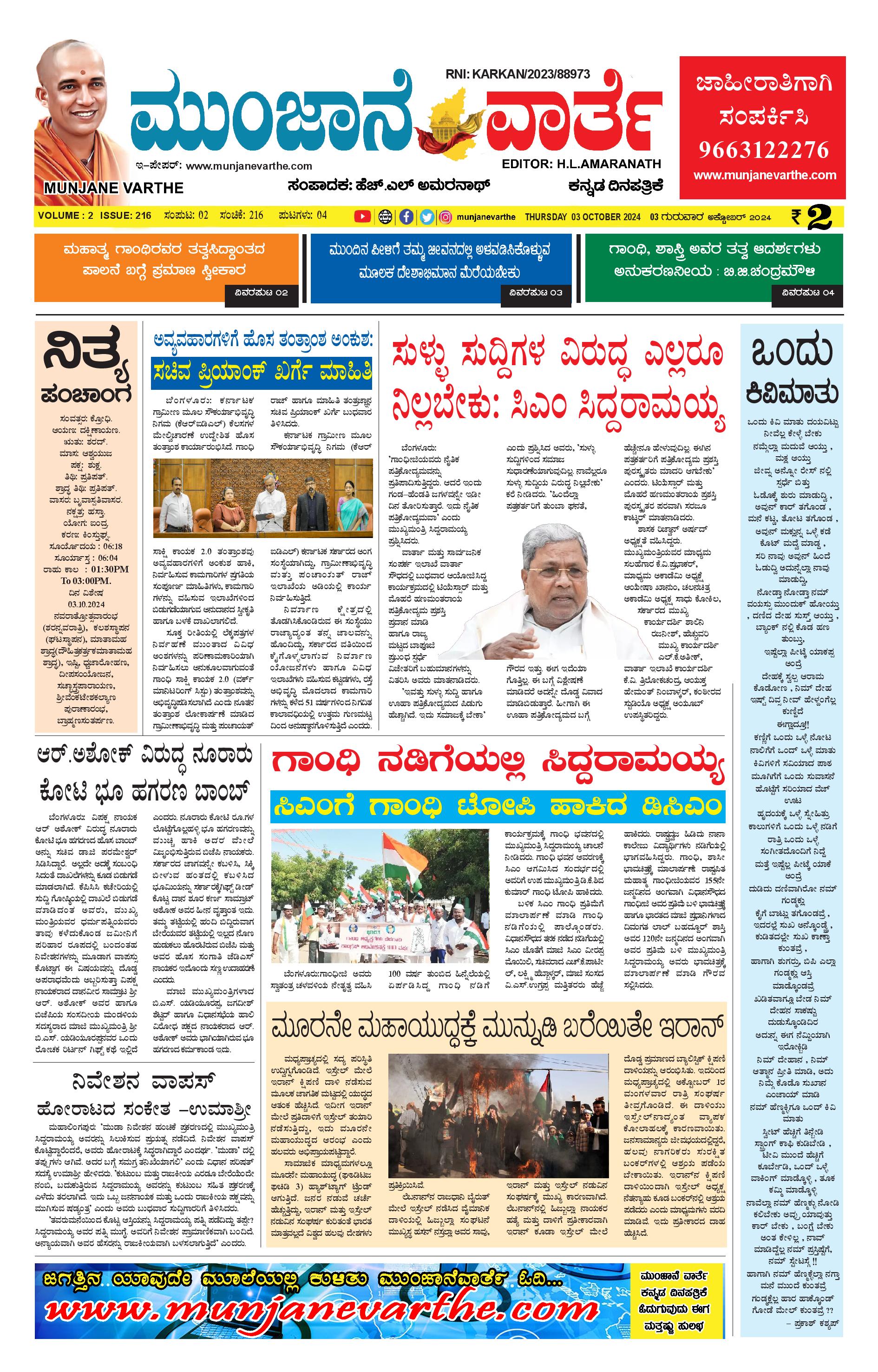 ಮುಂಜಾನೆ ವಾರ್ತೆ 03-10-2024 Munjane varthe