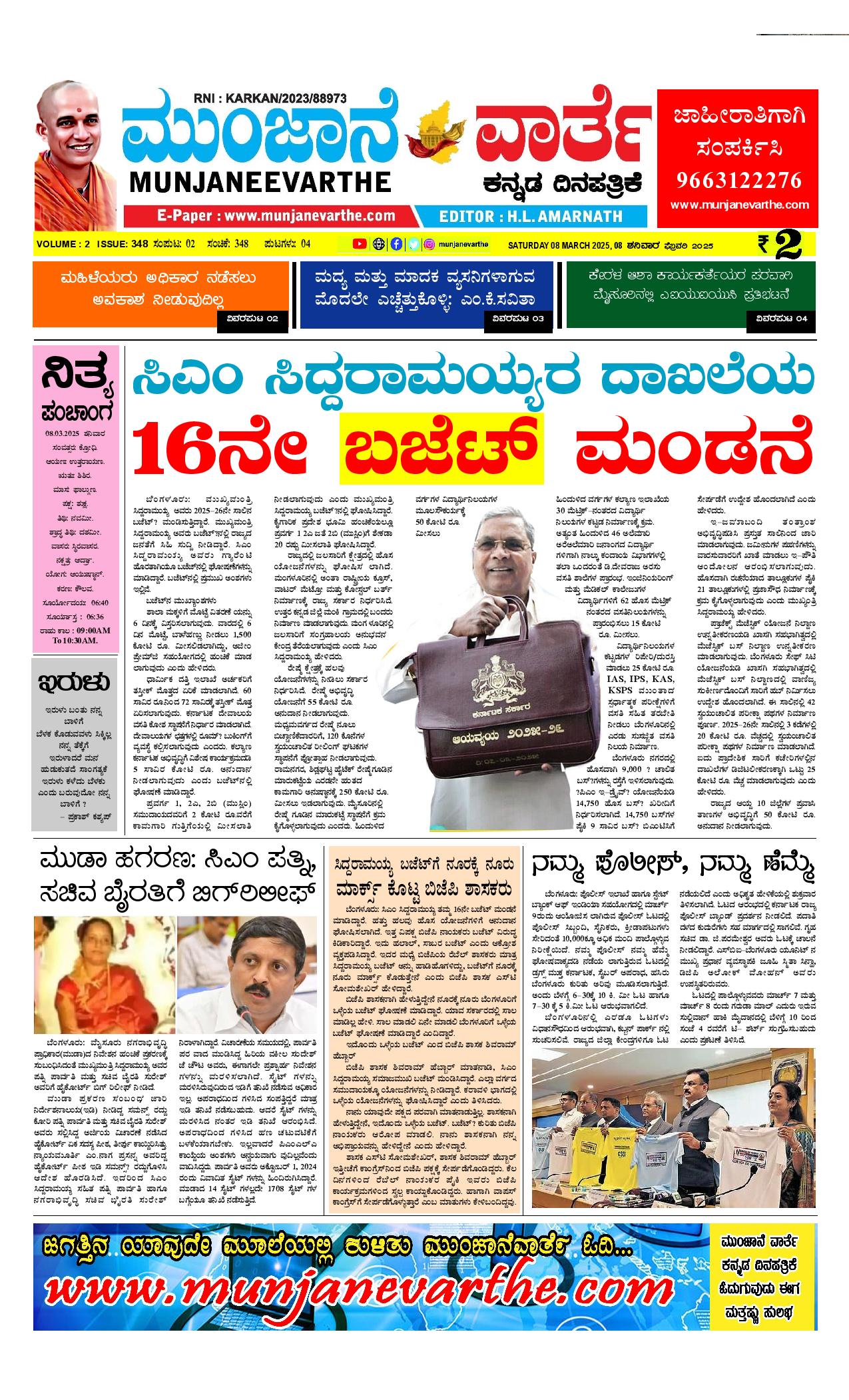 ಮುಂಜಾನೆ ವಾರ್ತೆ 08-03-2025 Munjane varthe