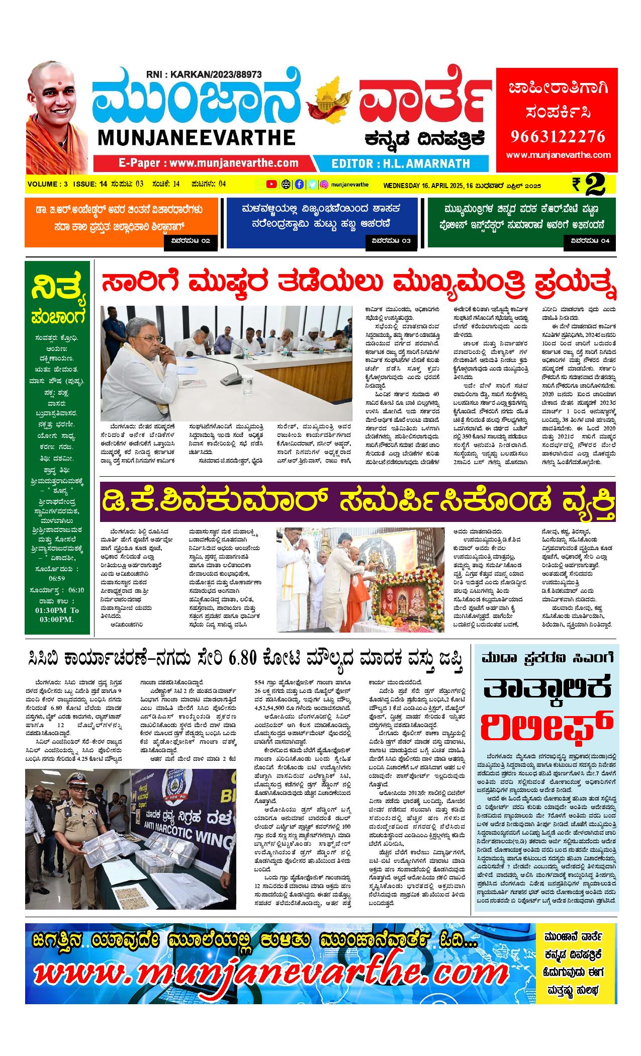 Munjane varthe 16-04-2025 April 16, 2025 << First << 1 >> Last >> Page 1Page 2Page 3Page 4 × Munjane varthe 16-04-2025 Munjane varthe 16-04-2025-page-001Munjane varthe 16-04-2025-page-002Munjane varthe 16-04-2025-page-003Munjane varthe 16-04-2025-page-004 << First << 1 >> Last >> Munjane varthe 16-04-2025-page-001Munjane varthe 16-04-2025-page-002Munjane varthe 16-04-2025-page-003Munjane varthe 16-04-2025-page-004 Munjane varthe 16-04-2025-page-001
